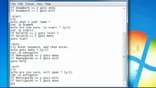 data game nya ini ya tinggal di copas @echo off color 0a title -----------------------Game Youtube--------------------------- :menu cls echo Hey! Welcome to the game! echo 1) Start! echo 2)...